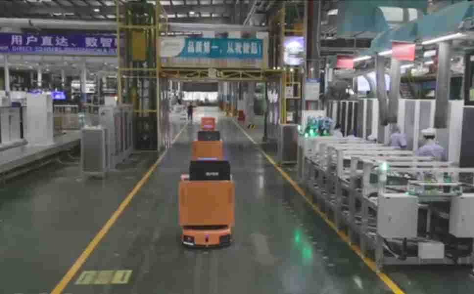 为车载冰箱物流配送打造的智能解决方案,,,包含产中物流通过潜伏举升AMR搬运至线边,,,,产后成品物流智能仓储,,,流程包含产中物流智能齐套入库,,线边安灯叫料AMR智能配送至线边,,,成品入库、、、、出库,,,,通过无人堆高车机器人,,,,智能仓储管理替代人工作业管理,,,,实现更高存储、、更高效率、、、、更具柔性化的解决方案。。。